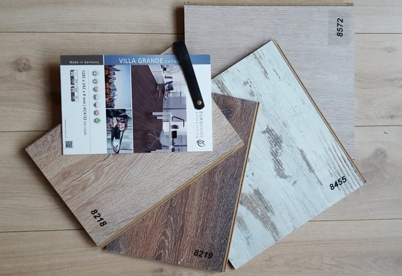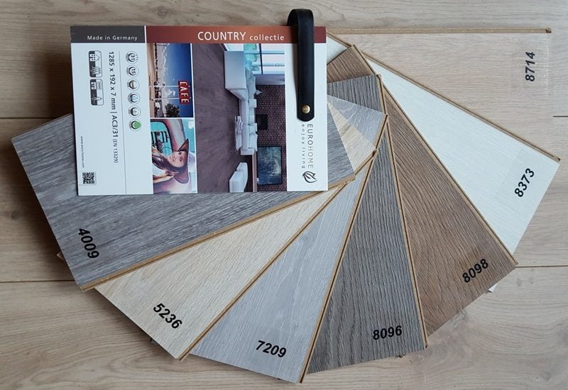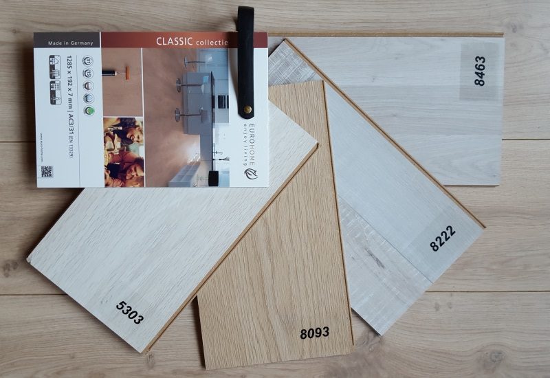 Het All-in laminaat concept van de Online Vloerenstudio biedt keuze uit maar liefst 29 vloeren. De meeste mensen hebben al snel een voorkeur voor een bepaalde kleur en type laminaat. Dan blijven er vaak nog een aantal vloeren over om uit te kiezen. Welke kleur vloer past het beste bij het bankstel en welk type vloer sluit mooi aan bij de stijl van het huis? Door diverse stalen naast de bestaande meubels, de keuken of een muur te leggen, wordt snel duidelijk welke vloer het beste aansluit. Bovendien geeft het voelen en vasthouden van het vloerdeel meer zekerheid over de kwaliteit dan wanneer het alleen vanaf een afbeelding is te zien.